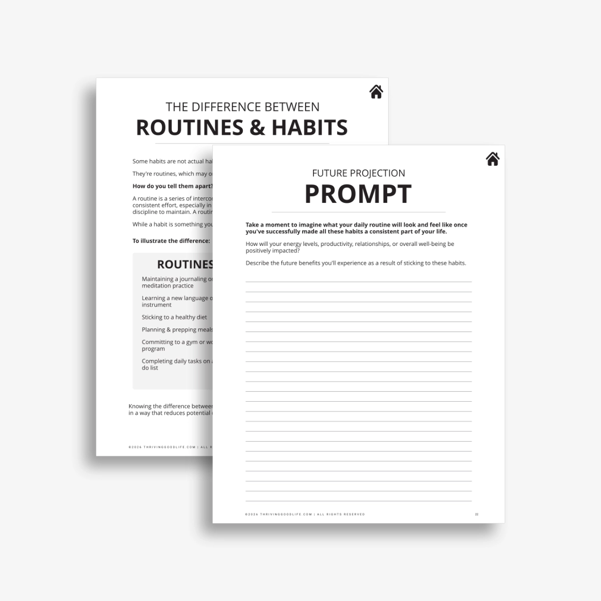 - Access thoughtfully written prompts to help you analyze patterns of behavior, and review and reflect on your progress.